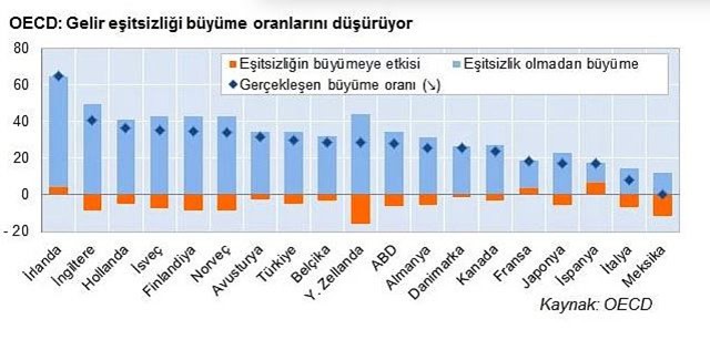 Yukarıdaki şemada da görüldüğü üzere durumlar pek iç açıcı değil ki OECD’nin ve Dünya Bankası’nın raporları ileriye dönük tahmin rakamları da aynı şeyi söylüyor. Gelir adaletsizliği büyüme oranlarında gözle görülür bir azalmaya sebep oluyor ve bu durum her geçen gün daha da gelişmiş ülkeler ile diğer ülkeler arasındaki makasın açılması anlamına geliyor.