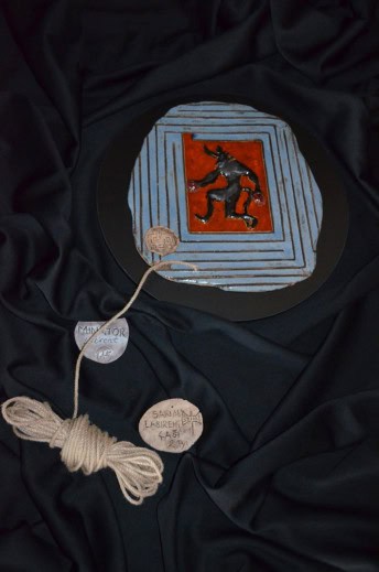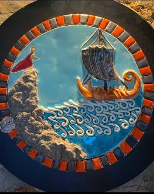 Hülya Akyol’un sanatında ilgi çeken pek çok özellikten önce kendisini diğer sanatçılardan ayıran önemli bir yöne dikkat çekmek isterim. Sanatçı, bir arkeolog olarak, Anadolu hakkında tüm gerçekleri eserlerine aktararak insanları gerçek bilgiye yönlendirirken sanatı da ulaşılabilir hale getiriyor. Öncülüğünü Halikarnas Balıkçısı olarak tanınan Cevat Şakir Kabaağaçlı’nın yaptığı “Mavi Anadoluculuk” akımına bağlı kalarak çoğu mitin Anadolu kökenli olup Akdeniz ve çevresinde geçen efsaneler olduklarını ve bu efsanelerin dönemin yazarları tarafından Latince ve Yunanca yazılması sonucunda Yunan ve Roma Mitolojisi adı altında günümüze geldiğini savunur. Çoğu Yunan ve Roma mitine baktığımız zaman dönemin zihniyetini de dikkate aldığımızda tamamen bu topraklara ait mekân ve yaşam tarzı görürüz. Bu da Mavi Anadoluculuk fikrini destekleyen en güzel örnektir. Hülya Akyol da bu akımdan etkilenerek ve Anadolu topraklarının mitolojiye köken oluşturduğuna dikkat çekmek amacıyla mitlerde tasvir edilen detaylara birebir bağlı kalmıştır. Sanatçı, seramik tablosunda Salmakis’i mitlerde anlatıldığı şekilde kırmızı pelerini ve altın sarısı saçlarıyla işleyerek adeta ona hayat vermiştir. Aynı şekilde Thseus’un gemisindeki siyah yelken ayrıntısını da doğrudan yansıtması da öğretici bir amaç ile eserler ürettiğini gösterir.