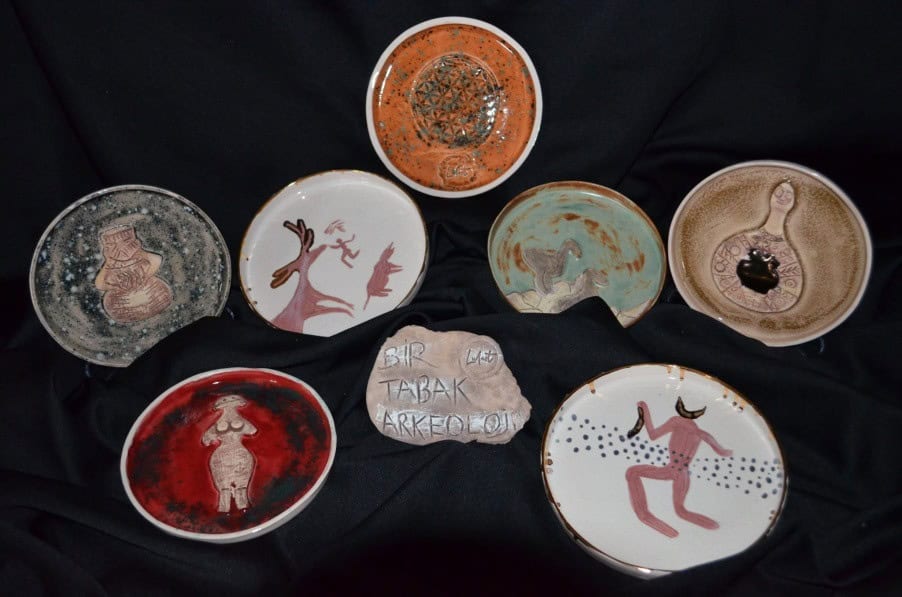 Hülya Akyol’un “Bir Tabak Arkeoloji” ismini verdiği serisi, İstanbul sergisinde büyük ilgi görmüştür. Seramik tabaklara işlenen Göbeklitepe- ana tanrıça figürleri ve fincanlarda ilk defa sanatseverlerle buluşan Çatalhöyük duvar resimleri görülmesi de sanatçının arkeoloji ve sanat tarihinin hayatın içinden bir alan olduğunu gösterme biçimi olarak düşünülebilir. Burada ana tanrıça fikrinin de Anadolu ve Mezopotamya kaynaklı olduğuna dair bir farkındalık yaratmayı amaçlamıştır. 9 bin yıllık yerleşim yeri olan ve 60 yıldır kazıları süren Çatalhöyük duvar resimlerinin tabak ve fincanlarda sergilenmesi, insanların bu ürünleri kullanırken arkeoloji ve tarihin derinliklerine inmesini sağlarken kahve içmek gibi günlük bir olayda bile bu toprakların geçmişi hakkında bilgi sahibi olup, konu üzerine düşünülmesi adına muhteşem bir argüman sağlar.
