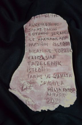 Bugün, bir avuç seramik için mi? Diyerek betonarme inşaatları durdurmayan ve bu toprakların geçmişini demir yığınlarının altına gömenler, işlerine geldiğinde tarihi değerlerimiz diye tutturarak Anadolu ile hiçbir ilgisi olmayan kültürleri empoze etmeye çalışıp kendiyle çelişirken, arkeolojik ve mitolojik geçmişimizi nesilden nesle aktarmayı misyon edinen sanatçılarımızın olması tarihin sürdürülebilirliği konusunda umutları yeşertiyor. Arkeolog ve seramik sanatçısı Hülya Akyol, tüm eserlerine birikimlerini aktararak tarihin öğretici ve hatırlatıcı olması gerektiği bilinciyle Anadolu mitlerini ve arkeolojik zenginliğimizi yansıtıyor.