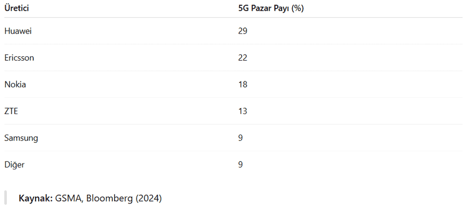 Grafik 4: Batı ve Çin’in 5G Pazar Payı Rekabeti (2024)