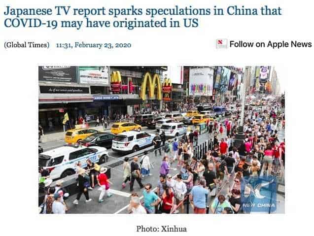 Şubat ayında, Japon Asahi haber ajansı (Basın ve TV) corona virüsün ABD değil, Çin kökenli olduğunu iddia edip, ölüm nedenleri grip olarak deklare edilen 14 bin Amerikalıdan bazılarının veya birçoğunun gerçek ölüm nedenlerinin corona virüst olabileceğini ileri sürdü.