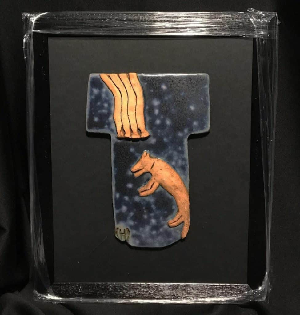 Yine Göbeklitepe’de yer alan bir bezemeden esinlenerek meydana getirilen tanrının gizemli el çantaları da kafalardaki soru işaretlerini artıran bir unsur olarak karşımıza çıkar. Göbeklitepe’deki çanta figürlerinin dünyanın farklı bölgelerindeki bulgular ile de benzerlik göstermesi bizi bu gizemin içine çekmekle kalmaz, aynı zamanda tüm olasılıkların gündeme gelmesi konusunda da ilham kaynağı olabilir. Sanatçı bu figürleri izleyiciyle buluştururken belki de Göbeklitepe’nin sırrının çözülmesi amacıyla bir farkındalık oluşturmaya çalışmış olabilir.
