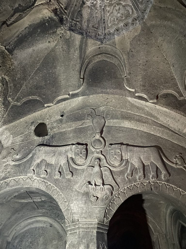 Ertesi gün Erivan’dan çıkarak Ararat’ın, yani Ağrı Dağı’nın yakınına, Khor Virap Katedrali’ne gittik. Şansımıza hava çok güzeldi ve dağ çok net şekilde görünüyordu. Ermenistan rakım olarak daha alçakta olduğu için Ağrı Dağı buradan çok daha heybetli görünüyor. Elbette Ermenistan’ın hakkını da teslim etmek gerekiyor. Ararat İncil’de geçtiği ve Ermeniler için kutsal olduğu için hiçbir binayı dağ silüetini bozacak şekilde inşa etmemişler. Oradan ayrıldıktan sonra Garni Tapınağı’na gittik. Garni Tapınağı, milattan sonra 1. yüzyıldan kalma bir pagan tapınağı. Dünyada bu kadar iyi korunmuş olan bir pagan tapınağına daha rastlamak kolay değil.