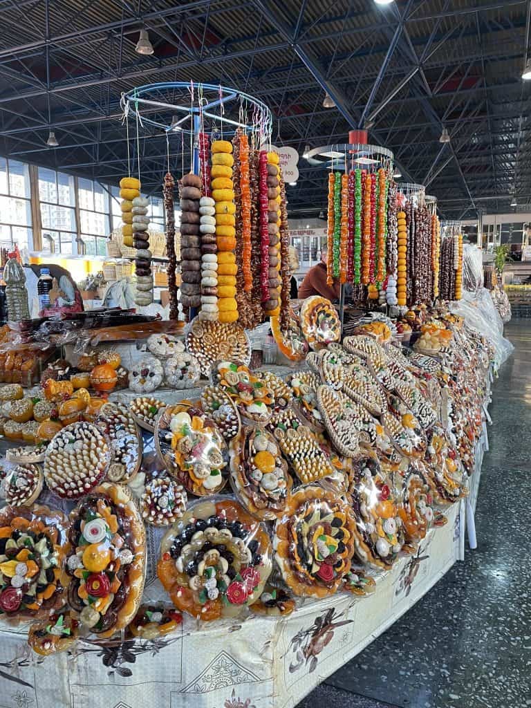 Eski Sovyet ülkelerinde en çok keyif aldığım şeylerden biri, üstü kapalı halk pazarlarında gezintiye çıkmaktır. Her şeyin en lezzetlisi ve en tazesi en uygun fiyatla bulunur. Erivan’ın kapalı pazarında hemen her ürünün içerisinde kayısı ve nar vardı. Ülkenin en ünlü iki ürünü, hatta sembolü diyebiliriz bu meyveler için.