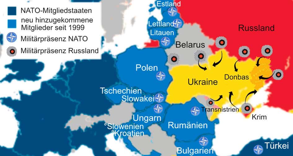 Rusya’nın kuşatılması ve Gürcistan ile Ukrayna’daki “renkli devrimler” hakkında çok daha detaylı yazmak mümkün; ancak konuyu fazla dağıtmamak için, Rusya’nın NATO tarafından nasıl kuşatma altına alındığını bir haritayla gösterelim ve değerlendirmeyi okuyucuya bırakalım.