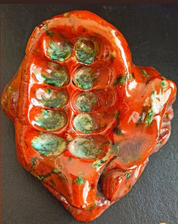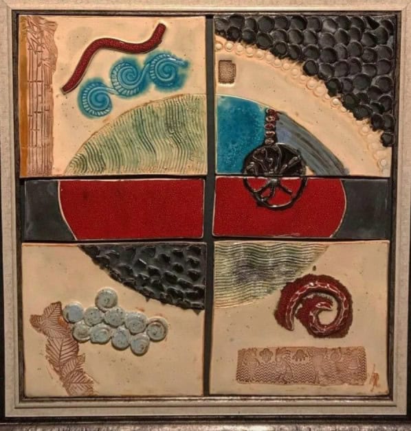 Bir arkeplog olan seramik sanatçısı Hülya Akyol’un “Dört Element” adlı eseri de tüm zamanları içine alan, her zaman ihtiyaç duyacağımız bir noktaya temas eder. Seramik eserin sağ üst köşesinde metal rengi pullar belki de makineleşmenin sonucu olarak dünyayı etkisi altına alan metal atıklar, belki de deniz kirliliğinin sembolü olarak balıkların çığlığının temsilidir. Hemen çaprazında, sol alt kısımda da gri pullar görürüz. Kuşların bile uçuş özgürlüğünü elinden alan betonarme binalar ve hava kirliliği de burada oldukça başarılı bir biçimde hissettiriliyor. Yine sol alttaki mavi spiraller ile de denizlerdeki müsilaja gönderme yapan Hülya Akyol, ateşi de orman yangınlarını temsilen kullanmıştır. Toprağı ağaç ve yaprak imgeleriyle sembolik bir biçimde bize sunmuştur. Sağ altta, Hititlerin tabiatın dirilişini kutladıkları bir sahne ile bizlere Anadolu arkeolojisini referans alarak doğanın her dönem için ne kadar da kutsal ve ihtiyaç duyulan,aslında insan olarak tüm zamanlarda muhtaç olduğumuz bir şey olduğunu yansıtmıştır. Ortadaki elips ise korumakta son derece aciz kaldığımız Dünya’mızı sembolize eder. Arkeoloji bilimini kullanarak insanlara hayata dair kesitler sunan sanatçı, doğa katlini de arkeolojik esintiler taşıyan bir eser ile son derece başarılı bir biçimde anlatmıştır.