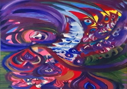 Dilek Menteş adlı sanatçımız bizi adeta renklerin içinde yüzmeye davet ediyor. Tuval üzerine akrilik çalışan sanatçı, yoğun fırça darbelerinin arasına bizi izleyen gözler yerleştirerek soyut bir esere somut bir özellik kazandırıyor. Belki de zihnimizin en ücra köşesinden bizi gözetleyen bilinçaltımızı ve içsel kaotik gelgitlerimizin izlenimlerini gözle görünür kılmıştır. Kuş tüyü kadar hafif bir his yaratan eserlerde renk kullanımı da son derece dikkat çeken bir unsurdur. En karanlık görünen ruhlarda bile bastırılmış da olsa pek çok rengin barındığını ve ışığa izin verdikçe renklerin de yavaşça gözle görülür bir hal alacağını anlatırcasına, ebruli bir fırçayı suya batırırcasına sunulan bu eserlerde zaman ve mekân kaygısı yoktur. Tüm zamanları içine alan bu eserler, insan zihninin tüm katmanlarında var olabilecek bir yetiye sahiptir.