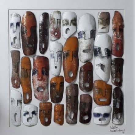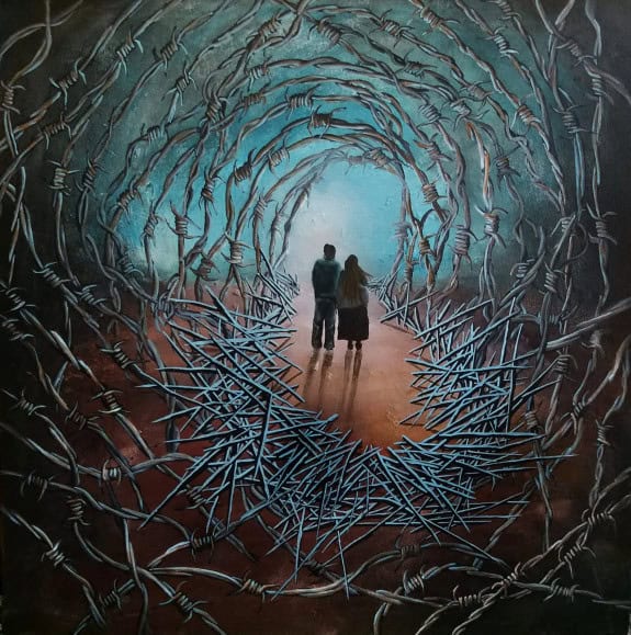 Nilgün Suna Coşkun’un, son derece titiz bir çalışma gerektiren sıcak mine ile ürettiği, “Pozitif Zamanlar ve Biz Kimiz?” adlı serisinden eserleri de sergide bambaşka bir döneme tanıklık etmemizi sağladı. Kendimizi ararken bilinçaltımızın bize haber bile vermeden gittiği yerleri bize gösteren bir çalışma olduğunu düşündüğüm “Biz Kimiz?” için belki de primitif döneme kadar uzanmamız gerekecek, oradan benliğimizde yaşadığımız bölünmelere de uğrayıp bu eserler sayesinde bilinçaltımızın katmanlarında tek tek dolaşma imkânı bulabiliriz.